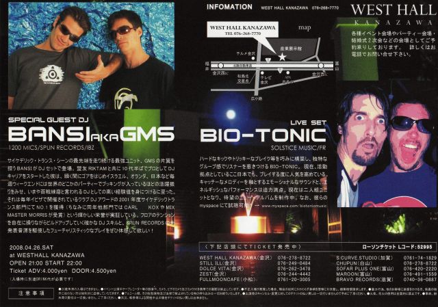 東京公演 日時: 2008.4.26(sat) 24:00 start