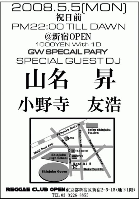 5月5日月曜日深夜11時よりいつもの『Club Roots』にてイヴェント開催です!!!