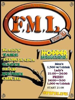 「Funky Monkey Listen」 5月17日(SAT)@PipeLine START 21:00 Men's 1,500w/1drink Lady's 21:00〜24:00 Free 24:00〜5:00 1,000w/1drink DJ KASSY TAKE TOMOTAKA GACCI SEIJI KENSEI OHCHI SHOW HOPPER PRODUCTIONZ