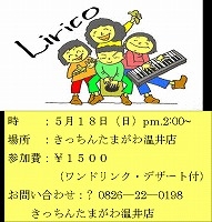 5/18(日)「ティータイム・コンサート」14:00〜15:30 広島県 安芸太田町 加計 温井ダムそば 「きっちん たまがわ」にて むかっ(怒り)オカリナユニット「Lirico(リリコ)」    ・・・オカリナ・ピアノ・パーカッション・・・