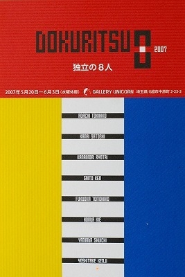 独立の8人 GALLERY UNICORN TEL:049-229-5201 FAX:049-229-5202 11:00am〜6:00pm(最終日4:00pm迄、水曜休廊) 安達時彦 金井訓志 金森良泰 斎藤研 福岡奉彦 本田希枝 山田修市 吉武研司 5月17日(土)午後4時よりオープニングパーティを行います。どうぞお出掛け下さい。