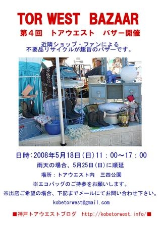 毎回ご好評頂いておりますトアウエストバザーをまたまた開催致します。 三四公園の桜の木はただいまとても綺麗なグリーンに色づいております♪ GW以降、初夏を感じる今日この頃ですね。 ご参加の皆さまは「エコバッグ」とともに「日傘や帽子」もお忘れなく! 開催日時:5月18日(日) 11時〜17時ごろまで (雨天の場合、25(日)に順延予定 場所:トアウエスト内三四公園 ※この日は「神戸まつり」のパレードと同じ日ですので、お車でお越しの場合 交通規制が予想されますのでお気をつけくださいませ。