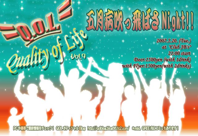 お待たせしました! 栄CLUB JB'sにてQOL開催します! 今回は前回に引き続き 名古屋を拠点に全国で活躍する 「albatross」と「givin' my sweet」の二組もゲスト出演! そしてQOLの歌姫「Mie」 Danceチームの「K.I.N.K」など ライブショーケースも充実 煌びやかな夜になる事は間違いありません また、ライブペイントやVJにより視覚的にも楽しめ 雑貨や塗り絵、フードなどの参加型のアトラクションもあるので 音楽だけでなく色んな楽しみ方ができます! 踊るのは無理!って言う人も クラブ初心者さんもどんな人にも好きなように楽し