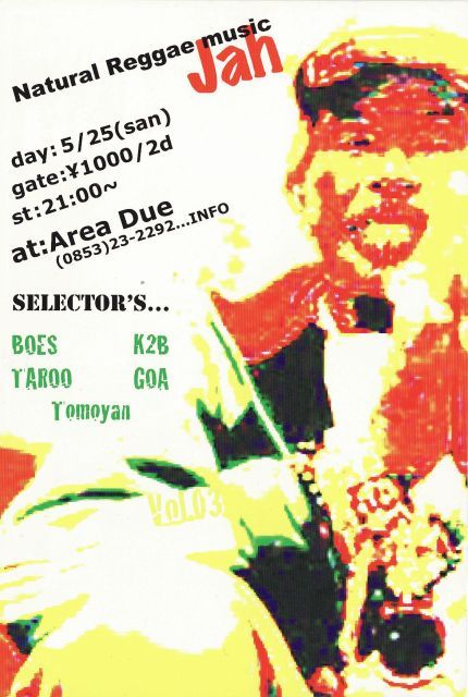 NATURAL REGGAE MUSIC 気が付けば3回目を迎えます MC無しのスタイルでユックリ行きます 今回のゲストはライクアストリームからTOMOYANNが参戦 見逃せません。 プライスはお財布に優しいい2ドリンクで千円ポッキリ スタートは9時から なぜかカウンターにはフリーフードの「おでん」が。。。 selector,s BOES TOMOYAN(LIKE A STREAM) TAROO GOA K2B