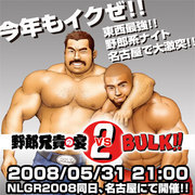 管理人様、告知失礼します! 今年もイクぜ!! 東西最強!!野郎系ナイト、 NLGR2008開催中の名古屋で大激突!! カッコ良く遊べる兄貴たちの肉弾戦『BULK!!』と 男臭さ炸裂のちょい不良(ワル)親父の『野郎兄貴の宴』 が 今年も名古屋の夜を熱くする! 両イベントですっかりお馴染み、ageHaでも大活躍の ガチムチDJユニット Team Dai-Kichiをはじめ、 イケメンGOGO兄貴も東西から大召還! ってなわけで野郎好きな野郎どもは5/31(土)名古屋に集合! 踊れ!飲め!脱ぎやがれ! 日時:2008年年5月31日(土) 開