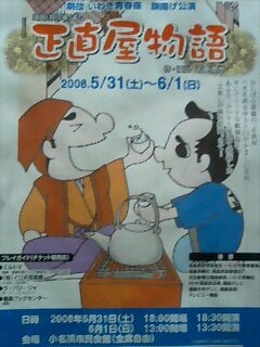 ついにできあがりました やっと御披露目です 劇団 いわき青春座 旗揚げ公演作品『正直屋物語』 おもしろいです ぜひ!!足をお運びください =日時= ○5月31日(土) 18時開場 18時30分開演 ○6月1日(日) 13時開場 14時00分開演 =場所= 小名浜市民会館(全席自由) =チケット= 大人 前売り券→1,000円 当日券→1,500円 学生 前売り券→500円 当日券→800円 プレイガイド ○エルトマ○(有)イワキ写真館○ラ・パリージャ おんぼろ旅籠の「正直屋」。 バカ正直な亭主と口やかま
