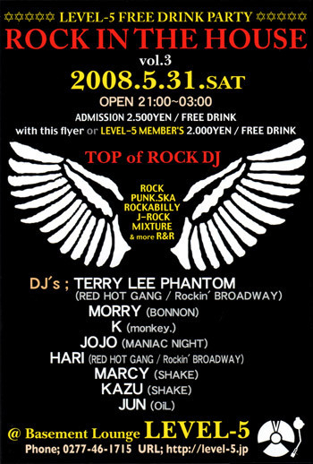DJ JOJOの持ち込み企画としてLEVEL-5のフリードリンク・パーティーに群馬のトップ・ロックDJが集結!今回出演の全ロックDJ、大ネタ炸裂でオープンからラストまでとにかくとばしていきます!!