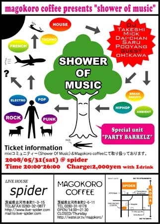 いつものMAGOKORO COFFEEでのShower of Musicとはまた違う盛り上がりで、上げ上げで、モリモリで、ウハウハな時間を過ごそうではありませんか!!