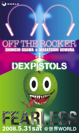 日本が世界に誇るアーティスト/プロデューサーにして日本のクラブシーンとポップシーンを繋ぐ最重要人物、大沢伸一(MONDO GROSSO/モンドグロッソ)が提唱する自身のレギュラーパーティ「Fearless(フィアレス)」。今回はゲストにミックスCD「APPLE」が好調なセールスを記録しまさにストリートから時代の寵児となった『DEXPISTOLS』の二人を迎えます。ホスト・大沢伸一もボンジュールレコード・上村真俊とのユニット『OFF THE ROCKER』としてよりエレクトロにブチ上げます↑↑日本屈指のエレ