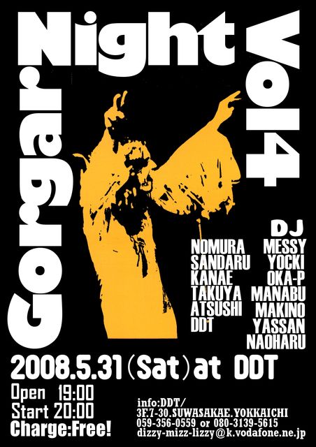 早くも4回目を迎えるDDTのレギュラーイベント「GORGAR NIGHT」。 明後日5/31(土)20:00スタートです! いつもと同じく、素人が集まって好きな音楽をかけながらワイワイやろうよ、 という楽しいイベントです。 HM/HRはもちろん、Loud Rock,Reggae,House,Popsなど、今回もオールジャンル! もしかしたら乱入枠もあるかも? 興味のある方は是非CD持参でご来店下さい! 今回ももちろんチャージは無料! 決して敷居の高いイベントではないので、初めての方も気軽に立ち寄って下さい! それでは皆さん、土曜日にDDTでお会いしましょう!