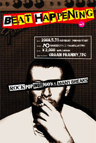 本日5/31は、NAKED SPACEにて新しくスタートするROCK DJ イベント"BEAT HAPPENING"!家のコンポやipodで通勤通学時に聴くのもいいけど、たまには大音量で友達と盛り上がるってのも楽しみ方のひとつですよー。 [ BEAT HAPPENING ] DATE: 2008.5.31 SAT OPEN/START: 21:00- VENUE: NAKED SPACE( http://www.naked-space.com/ ) SONG SELECTOR: ORGAN FRANNY, TFC and more FEE: 2000YEN(2D) GENRE: ROCK/POP/INDIE 仕事の前に爆音でthe WHOを浴びてなんとかやる気を出す。 残業を終え帰宅してNORAH JONESをかけ、シャワーに向かう。さっぱ