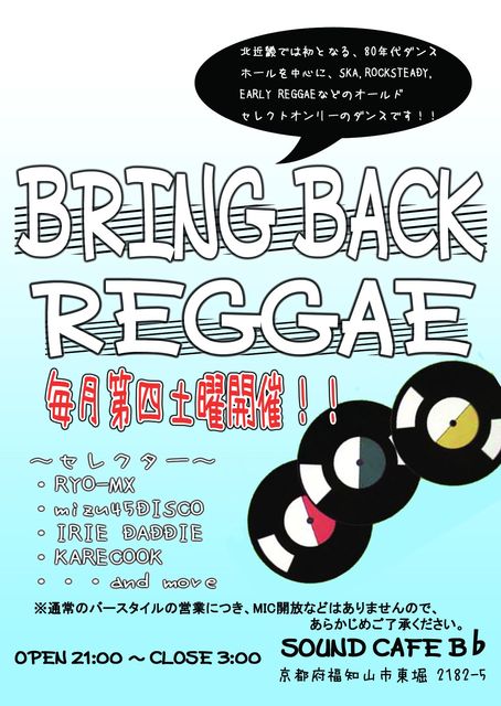 第一木曜日の"CAAN STOP BLAZING!!" @ Collage!! 平日ダンスの先駆けの、このレギュラーダンスも、早いもので三周年間近!! 三周年を控えた今回も、毎月第一木曜日の京都を揺らし続ける、レギュラーサウンド三組による VIBES 全開のダンスになること間違いなし!! 梅雨のジメジメも吹き飛ばす、すべてのレゲエ好きのためのダンス!! 週末だけじゃ物足りない、平日もレゲエを楽しみたい人は "CAAN STOP BLAZING!! @ Collage " に!! No Time to Waste, All A De Youths Dem... So, Don't Miss It!!