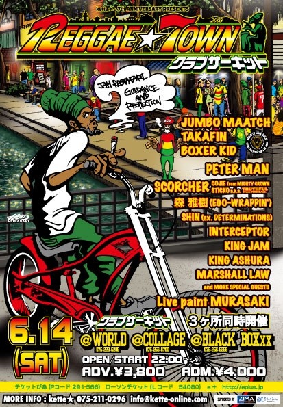 今年はkette★も『REGGAE TOWN』も7周年ということで、京都の街ごと巻き込んで、3つのクラブと3つのレゲエFOODS&BARの計6店舗を行き来できる”クラブサーキット”スタイルでの開催です☆