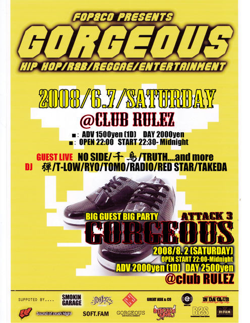 第二回目のGORGEOUS今回はHIP HOP.REGGAEのGUESTを迎え熱いSHOWが繰り広げられます。DJ陣も県外県内でHALLをLOCKする間違いないDJが集結してくれました!!!