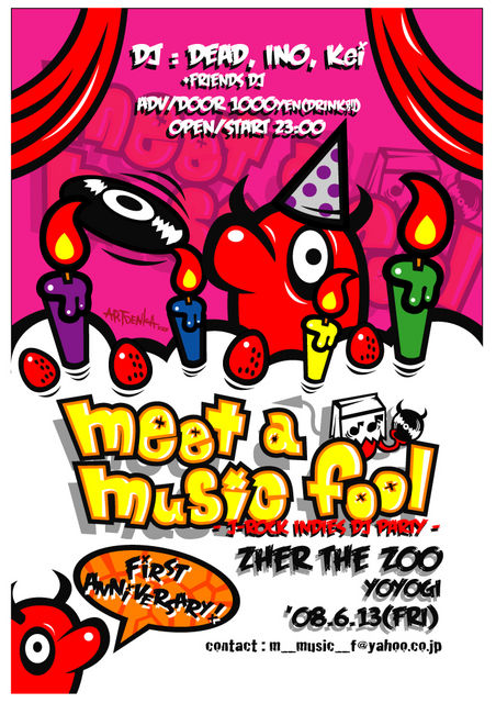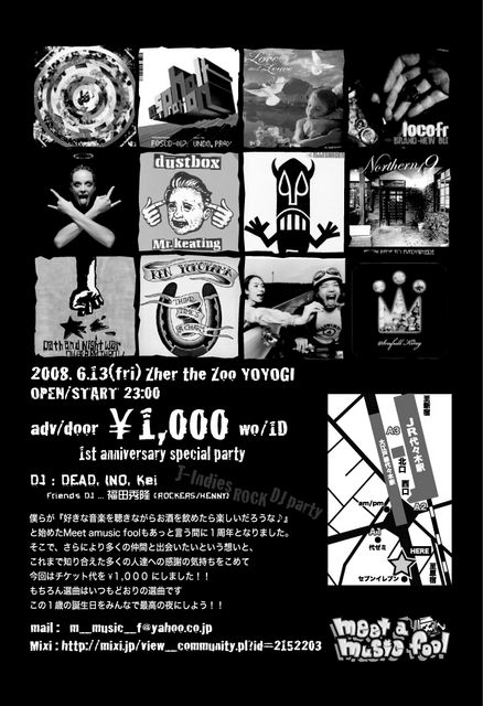 同じ事に一緒に熱くなれる仲間★同じ事で一緒に笑える仲間☆そんな人達と出会いたい!!そして好きな音楽と言う物をより楽しめるようになれたら。こんな想いから始まったイベント『meet a music fool』も、去年6月30日にVol.1を開催してから早いもので1周年を迎えます!!
