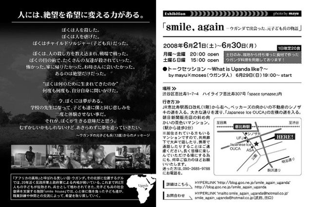 「smile, again —ウガンダで出会った、元子ども兵の物語」photo by mayu