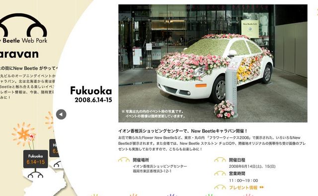 6月14日〜15日に香椎浜のイオンSCで開催されるニュービートルキャラバン!ボクら行くけどミンナ行かない? アソコって昼前くらいから駐車場が異常に混みだすから早めに行く予定っす! お時間のある方はゼヒ! たぶん、店内のスタバの前あたりで開催されると思うからスタバでウダウダしてるかもです♪ で、ちさちゃんは14日福岡に泊まるらしいので14日夜は軽く呑みに行きまする(^^) これまたお時間のある方はゼヒゼヒ!!!
