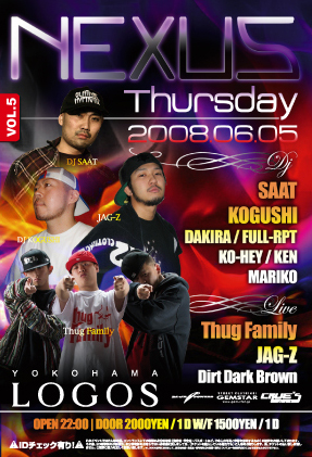 GWにDABO,DJ HAZIME,JAM TEK,MARSHALL LAWを招いて行ったRAGA RAGA NEXUSも大盛況で終わり偶数月の第一木曜日のレギュラーEVENTとして平日のNEXUSも今まで通り毎回多彩なGUESTを招いて横浜の平日を揺るがします!