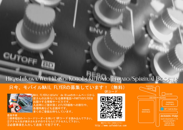 「追加機能」を意味するPLUG-IN第四弾開催! 今回は「月と太陽」からテック、プログレッシヴハウスのDJ:WU BUTTLEFEVERからERECTRO+DANCE MUSICのHAYATO。 そして初開催から出演を続けるテック&ミニマルのHIBINOと自作音源を用いたKOTOBUKI 県内ドラムンベースPARTY「RESOUND」などで活躍中のDJ:TOMO。 若干23歳、若手アブスクトラクトHIPHOP&DUB TRACKSクリエーターのTAKEUCHI。 様々な機材とスチールパンを用いたパフォーマンスのUMA。 HIGASIKAWAの自作ドラムンベーストラック&生トランペットのRYOKOの二人組みユニット。 ダブ、アンビ