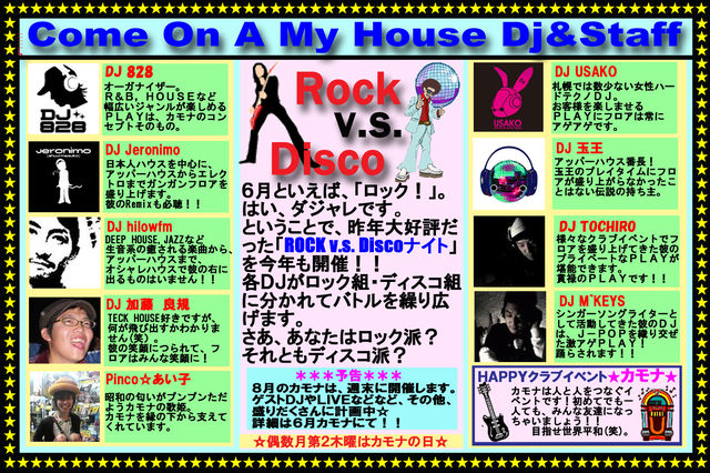 Come On A My House Vol.18 ☆Rock V.S. Discoナイト☆です!!
