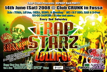 2008年から新たにスタートした毎月第二土曜のレギュラーEvent“TRAP STARZ”DJ YUMA, DJ Lil'Junを中心に毎月多彩なDJ陣でお送りします!! club CRUNKもお勧めの2008年から毎月第二土曜日を飾るPIC UP PARTY!!