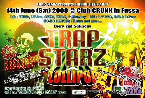 2008年から新たにスタートした毎月第二土曜のレギュラーEvent“TRAP STARZ”DJ YUMA, DJ Lil'Junを中心に毎月多彩なDJ陣でお送りします!! club CRUNKもお勧めの2008年から毎月第二土曜日を飾るPIC UP PARTY!!