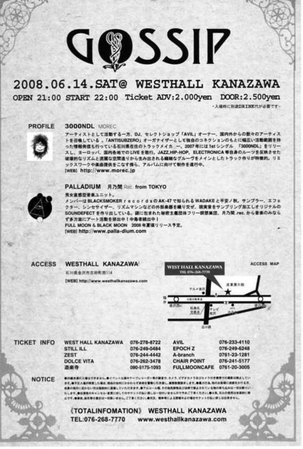 Ticket ADV:2.000yen DOOR:2.500yen (入場時に別途DRINK代が必要です)