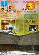 ☆苫屋presents SPECIAL ACOUSTIC LIVE -山背- (やませ)☆ ●●●2008 6月 15日 (日)●●● ・SPECIAL GUEST LIVE ◎OKI tonkori ◎GOMA da DIDGERIDOO ・live ○BON ○djembe team tomaya and more ・・ 場所 : 苫屋 : 岩手県九戸郡野田村大字野田 LIVEstart 17:00〜 前売当日共通 ¥2500 18歳以下 60歳以上 ¥1000 OPEN時間はfreeです、自然散策、バーベキュー、敷地内「野田焼き」陶芸体験(要予約) 等お好きな時間をお楽しみ下さい。 チケットはLIVE会場受付にて