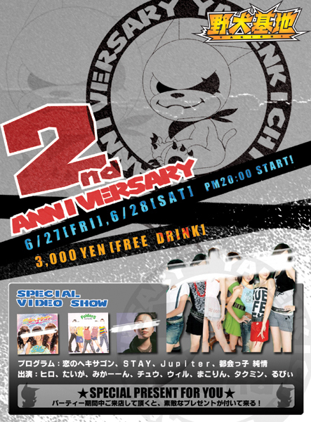 こんばんわ★☆管理人のなかねDです! 今回は5月にもやったけんちょむさんという方主催の 『CLUB WEEKENDER.』の一周年記念のクラブイベントのご紹介です。 →『WEEKENDER.<ウィークエンダー>』 http://mixi.jp/view_community.pl?id=2301755 私、なかねDもDJとして参加させて頂いてます★☆(今回で2回目) うれしい限りです(^^*) また、今回は自分の友人の2名の方の協力で、フードブースの設置します♪食べ物はタコスとキッシュです(≧▼≦)/どちらもお勧めですw1個300円ですしね笑 今回はなんと、総勢12名のD