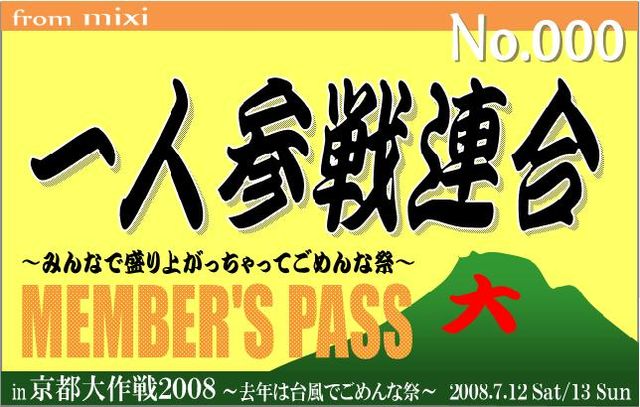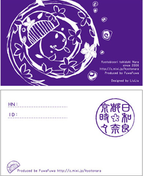 京都日和・時々奈良【公式イベントvol.3】 今宵逢う人みな美しき 〜祇園祭・宵山、山鉾巡行に逢いましょう〜 2008 コミュ仲間を見つけたら挨拶!の宝探しイベント 【概要】 「京都日和・時々奈良」オリジナル手ぬぐいを持って歩くだけ! そして、祇園祭で賑わう街中でばったり「京都日和・時々奈良」手ぬぐい&団扇を持っている人に会ったら、名刺交換。 もちろん、全て「自由行動」。「自分のペース」で宵山を歩いてください。 祇園祭には行けないがグッズだけ欲しいとい