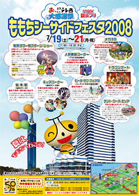 日時:7月19日〜21日 会場:福岡市早良区百道浜TNC放送会館周辺 11:00〜19:00(予定) ※実施時間はイベントやコーナーごとに異なります。 テレビ西日本 092-852-5555 インフォメーション 「ももちシーサイドフェスタ2008・おっ!?テレ西大感謝祭」はこの50年を視聴者のみなさんや地元のみなさんに感謝するとともに地域活性化に貢献するお祭りです 日ごろ、画面を通じて親しんでもらっている番組出演者やタレント、キャラクターが会場はもとより、生番組にも続々登場するテレビ局ならではのお祭り。 しかも、テレビ西日本の50周年を