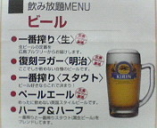 at 広島県安芸郡府中町大須2-1-1 ダイヤモンドシティソレイユ敷地内 『キリンプラザ キッチン1938』 082-510-1938 (予約者名:ウエイ) 会費:4,500円 《コースメニュー》 オードブル3種 真ガツオの和風カルパッチョ 豚バラ肉の味噌炒め &春キャベツ添え 揚げ物2種 点心2種 レタス炒飯 白魚とワカメの和風スープ デザート 〈飲み放題〉 ビールワイ