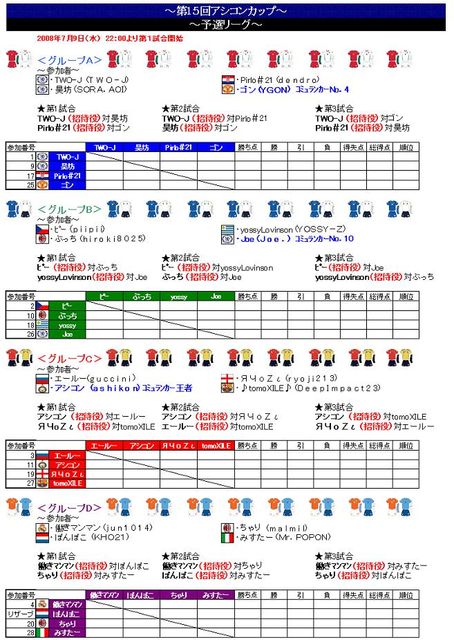 ºÇ½é¤Ë»²²Ã¤ÎºÝ¡¢£É£ÄµÚ¤Ó»ÈÍÑ¥Á¡¼¥à¤ÎµºÜ¤¬¤Ê¤¤¾ì¹ç¡¢»²²Ã¤È¸«¤Ê¤·¤Þ¤»¤ó¡£ ¥Á¡¼¥à¤Î¸å½ñ¤¹Ô°Ù¤Ï¶Ø»ß¤·¤Þ¤¹¡£ Âè15²óŽ±Ž¼ŽºŽÝ޶ޝŽÌŽß[PS3ÈÇ]¤ò³«ºÅÃפ·¤Þ¤¹ ͽÁª¥ê¡¼¥°¡Ê4¿Í¡ß8¥°¥ë¡¼¥×¡Ë¡¢µÚ¤Ó·è¾¡¥È¡¼¥Ê¥á¥ó¥È¤ò²¼µÆüÄø¤Ë¤Æ ¹Ô¤Ê¤Ã¤Æ¤¤¤¤Þ¤¹¡£ ¢¨Í½Áª¤Ë¤Ä¤¤¤Æ¤Ï¡¢»²²Ã¿Í¿ô¤Ë¤è¤ê¼ã´³Êѹ¹¤È¤Ê¤ë²ÄǽÀ¤¬¤¢¤ê¤Þ¤¹¡£ Ê罸¿Í¿ô¡§32¿Í ÆüÄø¡§ ¡¡¡¡¡¡¡¡7·î9Æü¡Ê¿å¡Ë22¡§00¤è¤ê¥°¥ë¡¼¥×Ëè¤Ë¤ÆÍ½Áª¥ê¡¼¥°¡Ê£±¿Í·×3»î¹ç¾Ã²½¡Ë ¾¡¤ÁÅÀ¢ªÆÀ¼ºÅÀ¢ªÁíÆÀÅÀ¢ªÅö³ºÂÐÀïÀ®ÀÓ¢ª»²²Ã±þÊçÀèÃå½ç¡Ä¤Ë¤Æ½ç°Ì¤ò·è¤á¤Þ¤¹