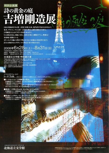 はじめまして、文学部D2のものです。 北海道文学館では、6月28日より8月31日まで詩人の吉増剛造先生のお仕事を紹介する「詩の黄金の庭 吉増剛造展」を開催いたします。その関連イベントとして、以下の上映会を行います。吉増先生と一緒にご登場いただくのは、北大の野坂幸司先生のお兄様で、もと北海学園大学教授の野坂幸弘先生です。みなさんぜひ来てください。 ■キセキgozoCiné vol.2 対話=吉増剛造×野坂幸弘 出演 吉増剛造(詩人)、野坂幸弘(日本近代文学) 日時 7月2日(水) 18:30〜 会場 北海道大学遠友