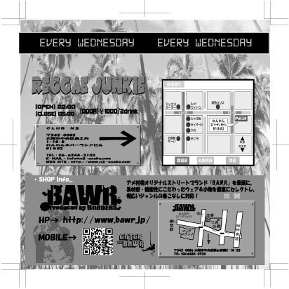 7月になります もうすぐ熱い夏ですよ!!! 7月のレゲエジャンキー@N3も早い時間から踊れて、 メッセージ性のある熱いDANCEを体験できます!!! 7/2(水) REGGAE JUNKIE 【場所】 CLUB N3 【OPEN】 22時〜5時 【DOOR】 男女共に1000円2ドリンク 【SOUND】 FIRE STORM 394R AQUANATION KAZUKI KOW 394R YOUTH DJ JUNPAY MY STAR 先着で MIX CDもプレゼントしますので、 お早めに遊びにお越し下さい!!!