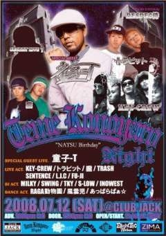 2008.7.12(SAT) 相模原@JACK 「TEME KONOYARO NIGHT」 OPEN/START.22:00-ALL NIGHT ADV.2000yen(1d) DOOR.2500yen(1d) SPECIAL GUEST: 童子ーT LIVE ACT: KEY-CREW/トラビット/朧/TRASH SENTENCE/L.J.C/FU-JI DJ ACT: MILKY/SWING/TKY/S-LOW/INOWEST DANCE ACT: RAGA動物園/風雲児/あっぱらぱぁ☆