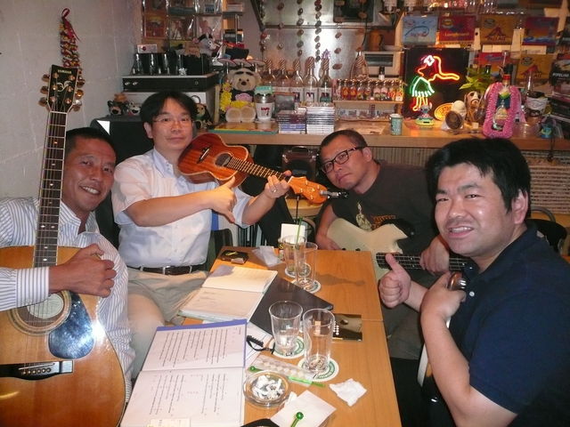 7月13日(日)にお届けするライブは、 KaiKai Boyzのホリホリ(Uke.Vo)参加の別ユニットBand『Wiki-Wiki』 の記念すべきデビューライブ♪ 7月13日(日) 19:00〜 2stage 『Wiki-Wiki』 カヘア(Guitar & Vocal) ホリホリ(Ukulele & Vocal) しまやん(Bass & Vocal) ジミー(Percussion & Drums) music chargeは無料! 但し1drink1food or 2drink must order 要予約!満席になり次第〆切ります。 TEL 03-5731-8618 アイランズカフェ 土肥まで。 ★バンドプロフィール: Wiki-Wiki…某空港のバスではありません。じゃぁ何