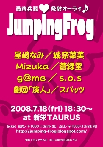 (前売り券、当日券共に入場の際ドリンク代別途必要となります)