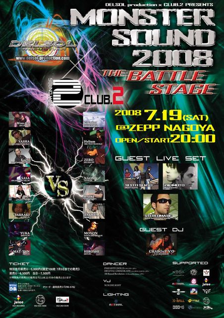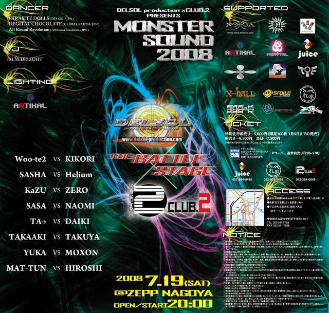 @Zepp Nagoyaにて!!! [ CLUB.2 ]×[ DELSOL ]がBIG FESTIVAL開催決定!!!!!!!!!!!!!! 東海地区怒涛のPSYTRANCE SEANを活性化させるCLUB【名古屋 CLUB.2】 http://mixi.jp/view_community.pl?id=1774840 と 6月7日-8日 @三河高原( Monster Sound 2008 )BIG 野外FESTIVALにて2000人もの集客するという快挙を成し遂げたオーガナイズ団体 【DELSOL】 http://mixi.jp/view_community.pl?id=2822021 との名古屋初の夢のコラボレーション プロデュース!!!!! まさに!!革命といえるべきであろう!!! ナント!!スペシャルケ