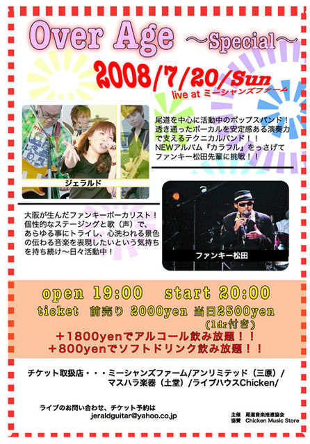 なんともおっとろしぃタイトルですが、 (笑) いよいよ今週末 20日にファンキー松田さんが尾道に歌いに来てくださいまっす 自然と笑顔にさせられる、 ファンキーさんのライブは必見ですよー 一度行くと、 必ずまたライブに来たい と、 思わせてくださいます ライブはジェラルドとファンキーさんの2組の出演です。 19:00オープン、 20:00スタートです☆ チケットは前売り¥2000、 当日¥2500となっておりますが、 プラス¥1800で飲み放題 時間が長いので、 と