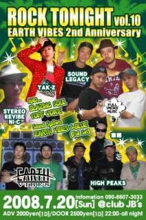 EARTH POWER PRO [ROCK TONIGHT vol.10] EARTH VIBES 2ndANNIVERSARY 7月20日[日曜]@CLUB JB's前売り2000円当日2500円 START22:00〜5:00 ★★GUEST SOUND★★ SMOKE KING [from大阪] STEREO REVIVE [FROM倉敷] SOUND LEGACY [FROM広島] ★★GUEST SINGER★★ TAK-Z [from大阪] ☆☆HOME SOUND☆☆ HIGH PEAKS BLAZING SOUL EARTH VIBES withSOUNDSYSTEM ☆HOME DEEJAY☆ 東男 TUFF VOICE and more 今回のROCK TONIGHTは EARTH VIBESの2周年!! 広島.岡山.大阪から 次世代のSOUNDを迎えてのANNIVER