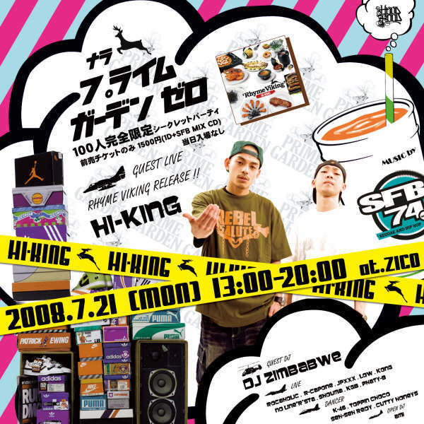 ついにやります2K8「プライムガーデン−ゼロ-」 前売りチケットのみ完全100人限定!! (注意)当日入場はございませんので必ず前売チケットをお買い求め下さい なお、チケット販売に関しましては当コミュニティもしくは、 下記アドレス、携帯番号までにご連絡頂けますよう宜しくお願い致します。 また、早期チケット完売の可能性もございますので完売の際はご理解 ご了承頂けますよう宜しくお願い致します。 チケット購入連絡先 primegarden074@yahoo.co.jp 09011592991 (SFB) 7月21日(月)ー海の日SPー