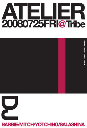 ◎◎2008/7/25(fri) 〔HOUSE〕◎◎ "ATELIER vol.19" ☆OPEN & START☆ 22:00〜midnight ☆ENTRANCE☆ ADV:1,500yen/1DRINK/FREE FOOD DOOR:2,000yen/1DRINK/FREE FOOD ※先着30名様に、BARBIE MIX CDプレゼント!!! ☆DJ's☆ *SALASHINA *YOTCHING *MITCH *BARBIE ☆FOOD☆ *気まぐれヘルシー炊き込みご飯 *気まぐれおかず *気まぐれフルーツ Presented by デリィの種 (都合によりメニュー変更になる場合がございます) ☆SURPRISE☆ ??? デリィの種,パニィの罠 H