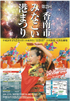 今年もおきゃく屋は参加しま〜す。 この「みなこい」から今年の「よさこい」が本格的に始まりますね。 県下有力10チームのよさこい踊りと約3700発の花火だそうです。 以下、香南市観光協会のページより http://www.kounan-navi.com/spot_minakoiminatomatsuri.html ●アクセス ・香南市吉川漁港・天然色劇場 ・土佐くろしお鉄道よしかわ駅から徒歩約20分 ・南国インターチェンジから車で約20分 ●お問い合わせ TEL 0887-57-7520 (香南市商工水産課)