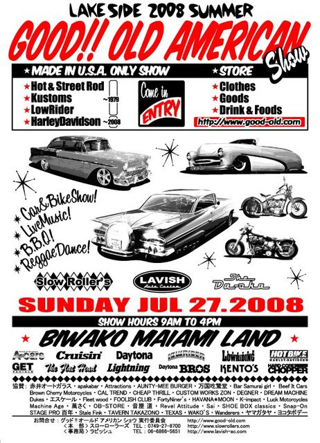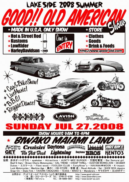 滋賀県初の本格CAR SHOW!! 只今 ENTRY中!! http://www.good-old.com/ 〜1979迄のアメ車 〜2008迄のH.D に限りますが、是非皆さんで盛り上げましょう AUNTY-MEE burgerは、出店します。