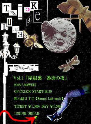 ☆LUNEfamily主催☆ 御洒落Party!! 『TRICK de LUNE vol.1 〜屋根裏一番街の夜〜』開催お知らせ!☆ ☆!!『TRICK de LUNE』!!☆ 読みは トリック ドゥ ルネ 〜〜〜 御洒落PARTY!! 『TRICK de LUNE』は LUNEfamilyや、屋根裏一番街に足を運んだ皆々様 (このPARTYの場に足を踏み入れたお客さんを皆TRICKER<トリッカー>と呼ぶ) 個人個人の世界構築・自己表現、 それらをもっと楽しもうという目的の元、開催に至りました! 開催時刻は、時計の針が6で重なる黄昏時。 〜〜〜〜〜 屋根裏一番の住人によるパフォーマンスファッションショー、 屋根
