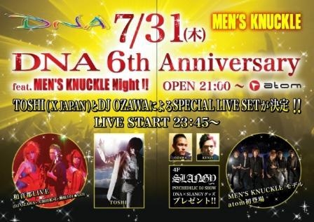 皆さん初めまして晴れ DJのYujiです電球 突然ですがライブの告知失礼しますがまん顔 7月31日(木)に渋谷のCLUB atomでDJと三味線のライブをやりますグッド(上向き矢印)グッド(上向き矢印) この日は平日にして毎週500人超えというモンスターパーティー「DNA」の記念すべき6th Anniversaryプレゼント そして三味線のライブには6周年にふさわしいスペシャルゲストXJAPANのVocalのTOSHIが参加しますぴかぴか(新しい) TOSHIの最新シングル「EARTH IN THE DARK」を三味線とデジタルトラックでリミックスグッド(上向き矢印)グッド(上向き矢印) どんな曲になるかは全く予測不可能