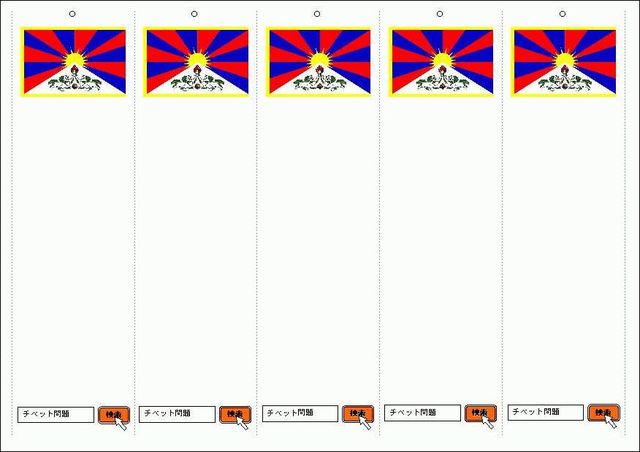 そろそろ七夕のシーズン。全国各地に、短冊を下げた笹がお目見えする季節になりました。 そこで! いろんな方のお願い事と一緒に、チベットの平和を祈る短冊も下げちゃいましょう! 手順: 1.ネットプリントで、下記IDの短冊をプリントアウトしてください。IDは随時更新します。 2.切り取り線で切り取り、○印のところに穴を開けて、紐を通してください。折鶴なんかも添えると、きれいになるでしょう。 3.「チベットに自由と平和が訪れますように」といった趣旨のお願い事を書いてください。 4.書きあがった短冊は、折れないようにクリア
