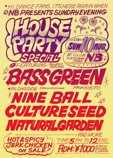 8月のHOUSE PARTYは初のゲストを迎えての内容!ゲストサウンドに『BASS GREEN』の登場です。