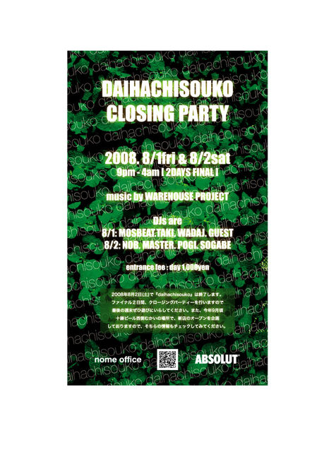 そんな第8倉庫のクロージングパーティー、みんなでラストを迎えましょう!!